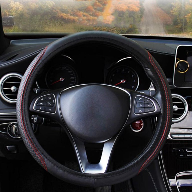 Kernelly Leather Steering Wheel Cover 14 1 2 To 15 Inch Universal Anti Slip Odorless For Car Truck Suv Red And Black Walmart Com