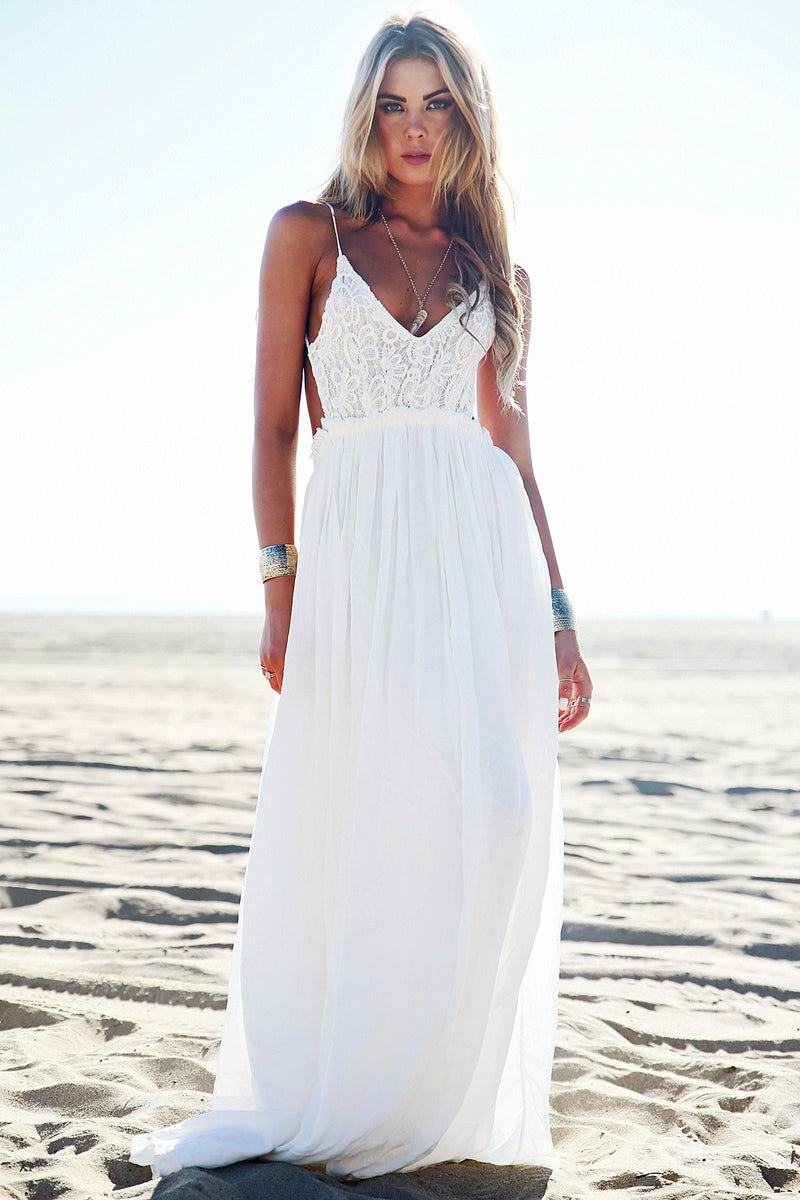 Camilla Open Back Crochet Maxi Dress White Haute Rebellious